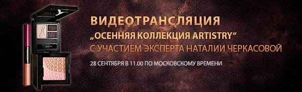 ![]() ГАЛАКТИКА КРАСОТЫ И ЦВЕТА Новая сезонная коллекция ARTISTRY GALAXY погружает в мир ярких и дерзких красок. Окунитесь в красоту цвета вместе с экспертом по декоративной косметике ARTISTRY Наталией Черкасовой 28 сентября в 11:00, раскройте последние тенденции этого сезона, а также узнайте об уникальных свойствах тонального крема ARTISTRY YOUTH XTEND и секретах его применения. И это еще не все - трансляция пройдет в новом для нас формате! Мы будем Вас ждать по ссылке www.comdi.com/amway/