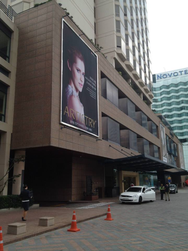 A billboard of ARTISTRY Global Face, Teresa Palmer, overlooks the city.